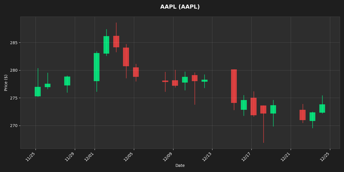 - Save AAPL 30-day candlestick chart as reference - Add README explaining chart features and data source - Example shows green/red candles with dark theme 🤖 Generated with [Claude Code](https://claude.com/claude-code) Co-Authored-By: Claude Sonnet 4.5 <noreply@anthropic.com>